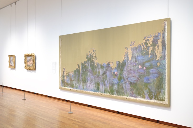 なかでも、モネの《睡蓮、柳の反映》(1916)は、「松方コレクション」の歴史を雄弁に語る作品といっていいだろう。痛々しく表面が剥離した本作は、かつて松方がモネ本人から購入したものの、第二次世界大戦中の疎開時に大きく損傷。その後は敵国人財産としてほかの松方コレクションと同様にフランス政府に接収された。本作は破損が大きかったために、その後の日仏友好のための返還リストに含まれず、長く忘れ去られていたが、2016年にルーヴル美術館で眠っていたものが見つかる。松方家に返還され、2017年に館に寄贈された。時代の流れに翻弄された本作は、美術が伝えていくものの大きさをこの時代に改めて感じさせるものといえるだろう。