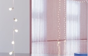 また、水や空が青く見えるのは太陽光線のスペクトルによる虚像でもあるが、その青を増長するように、次の部屋ではフェリックスの水色のカーテン《無題(Loverboy)》(1989)が窓の前に引かれている。補色関係にもある揺らぐ電球はこの青い部屋にも設置されていて、静かだが網膜に焼きつくほど眩しく、空間の隅々に広がる。金とは異なる儚さで、電源を落とせば消えてしまう弱さと同時に、まばたきをしたときにはもう残像をのこしている。