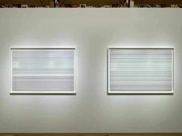 そのほか、オリジナルのプロッターマシンにボールペンを取り付け、ドローイングの画像データをもとに描かれた「Plotter」シリーズや、ジャレとのパフォーマンス作品の世界観を表現した仮想の3D空間を“撮影”し、コンピュータ制御によるドリルミルでアルミ板を刻印してつくられた写真彫刻の「Orbit」シリーズも紹介されている。