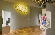 会場中央にあるホールエリアでは、「身体」のテーマをもとに立体作品を中心に展示。建築設計事務所「MMA Inc.」が展示構成を手がけたこのエリアでは、それぞれの作品は高さの異なる展示台に置かれており、個性豊かな作家の作品を異なる視点で鑑賞することが意識されているという。