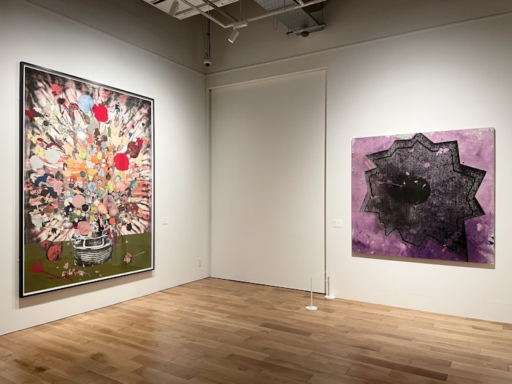 李朝の白磁壺とともに、桶田夫妻と親交があり、昨年11月に死去したヴァージル・アブローの絵画や、アートとファッションの領域を横断しながら活動するラシード・ジョンソンやアダム・ペンドルトンの作品が出現。長年ファッションビジネスに携わっている桶田夫妻コレクションの特徴をもっとも象徴する展示とも言える。
