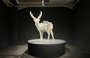 SPACE 5では、マシュー・デイ・ジャクソン、ネイト・ロウマン、名和晃平の作品3点が展示。名和晃平が率いる「SANDWICH」の協力を得てデザインされた奥の展示室では、名和の代表作《PixCell-Deer#48》が薄暗い空間のなかで明るい輝きを放つ。鹿の剥製の表面を透明の球体(セル)で覆った彫刻作品では、セルのレンズの効果によって物体の表面が歪曲され、見る者の視点によってその景色も大きく変化する。