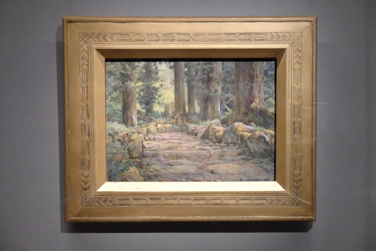 版画で著名な吉田博の妻である吉田ふじをの《神の森》(1910)も見逃すには惜しい作品だ。第4回文展で褒状となった水性で描かれたとは思えないほどの深みのある色使いが目を引く本作は、博とともにアメリカに渡り活躍したその実力をいまに伝える逸品といえる。