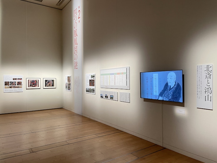 そのほか、本展では北斎の肉筆画2点のマスターレプリカや、北斎が生涯で描いた4つの鳳凰図の関係性について説明するパネル、岩松院本堂再建の際に世話人を務め、北斎に天井絵の制作を依頼した髙井鴻山や、舞台となる小布施、そして岩松院について紹介する動画なども展示。多様な資料を通し、当時北斎と小布施の人々が目指していた世界を堪能してほしい。