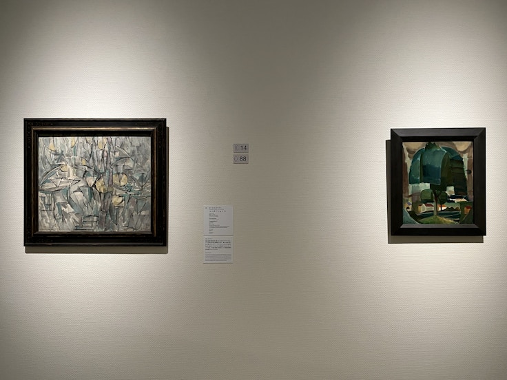 また、ピート・モンドリアンの《コンポジションX》(1912-13)もその好例のひとつだ。樹木をモチーフにしたこの作品では、果樹が画面に秩序とリズムを与え、モンドリアンが追い求めていた宇宙の秩序の寓意としての絵画空間となっている。