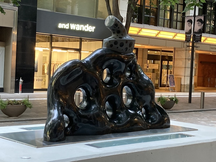 継続展示の作品も見逃せない。二重橋スクエア付近の草間彌生《われは南瓜》(2013)は、草間にとって初の石彫作品として2013年につくられた。草間がモチーフとして使い続けてきたカボチャだが、本作は半永久的に残る御影石という素材に、草間自身の作家としての姿勢を込めているという。