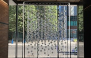 松尾高弘は大手町ビルのエントランス2ヶ所に光のインスタレーション《Prism"Dahlia + Peony"》を設置。花の結晶をモチーフにつくられた本作は、昼は太陽光を取り込みながら輝き、風景と交錯することが目指されている。