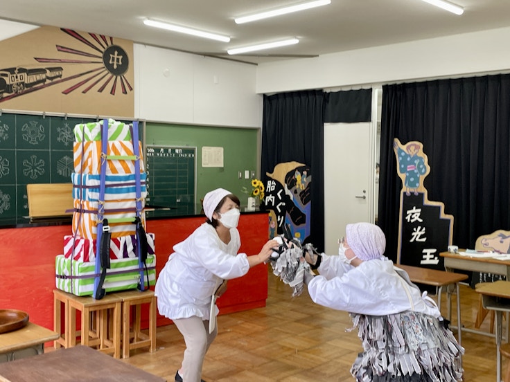 また、津南エリアにある昨年閉校した旧津南小学校大赤沢分校では、山本浩二が秋山郷で採取した樹木やその写真を素材に「恵みの山」を教室内に再現した《フロギストン》や、松尾高弘がかつて同校にあった土のプールのミニチュアを大赤沢の土で再現した《記憶のプール》などを展示。自然の風景や記憶の光景が現実空間に浮かび上がっている。深澤孝史による特別企画展「秋山生活芸術再生館 ー田口洋美 秋山郷マタギ狩猟映像上映ー」では、狩猟文化の研究者である田口洋美が90年代前半に撮影したマタギの狩猟映像上映を中心に展示を行い、貴重な映像とともに秋山郷の文化を再考するきっかけをつくりだしている。