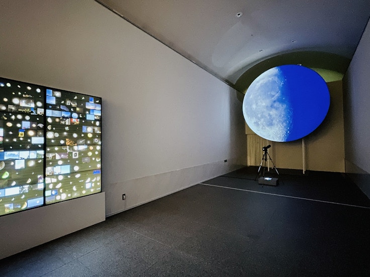 引きこもりの経験を基点に、生きづらさを抱えた人々との協働制作を行う渡辺篤は、「アイムヒア プロジェクト」を主宰するアーティストだ。壁面に並ぶ様々な月の写真《Your Moon》(2021)は、2020年4月の緊急事態宣言直後に「孤立感を感じていること」を条件に、匿名の人々が寄せたもの。また天井から吊るされた照明《ここに居ない人の灯り》(2021)は、なんらかの理由で美術館には来ることができない遠方の参加者が操作しており、明滅の瞬間に、見ぬ誰かの存在を強く感じさせる。「I'M HERE」という言葉から「STILL ALIVE」を照射する、芸文センターの最後を飾るにふさわしい作品となっている。