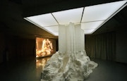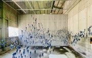 コロナ禍において意識されるようになった「呼吸」。7名からなるコレクティブ「ミルク倉庫+ココナッツ」が呼吸をテーマに制作したインスタレーション《魂の錬成》(2022)は、愛知芸術文化センターでも突出した作品のひとつだろう。愛知芸術文化センター全体を「呼吸器官」に見立てた彼らは、建物屋上か取り込んだ雨水が館内8階から12階を貫く吹き抜けで濾過されながら循環するインスタレーションを構想。巨大な吹き抜けが「肺」と見なされ、鑑賞者はさながら体内を循環する「血液」のような存在となる。