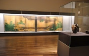 第4章「風景に心を寄せる」は、豊かな自然や身近な風景をモチーフにした日本美術を紹介。海北友松の屏風《浜松図屏風》(桃山時代、1605)と《網干図屏風》(桃山時代、1602)は、友松らしい独特の構図やリズミカルな曲線が目にも楽しい。