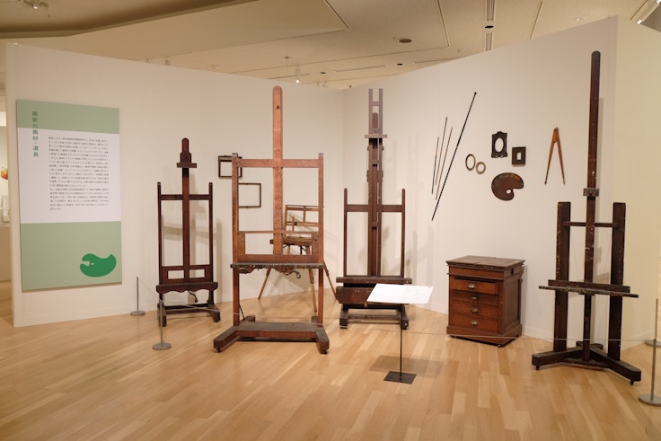 「画家の画材・道具」の展示もユニークだ。先にも述べたとおり、同館のコレクションの軸には「日本人画家が海外で学んでいた際に制作した作品」というものがあるが、その収集過程において画家たちが実際に使っていた道具や画材もコレクションに加わえてきたという。