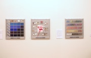 同館開館当初の学芸員が考案したという「引き出し博物館」は、それぞれ「画材」「素材─木」「素材─紙」「素材─金属」といったテーマが設けられ、そのなかには絵具の素材や様々な画材、支持体、木や紙の種類などが分類され、収められている。本展ではこうした引き出しを一挙に公開することで、作品を分解し分析的にとらえることのおもしろさを知ることができる。