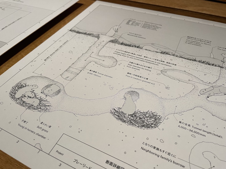 巣の断面詳細図を記したグラフィックを見ると、オグロプレーリードッグにもそれぞれ家庭があり、用途によって部屋を分けている様子が伺える。さながら人間のようだ。