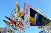 まず、サマソニのメインゲートを華やかに飾るのは東京、湘南を拠点に活動するアーティスト・小林健太の《フラグメンツ・オブ・メモリー, 2022》だ。小林は東京都心で撮影した風景写真を破片として散りばめたゲートを制作。音楽イベント特有の、駆け抜ける疾走感やリズムをシャッターストロークで表現している。