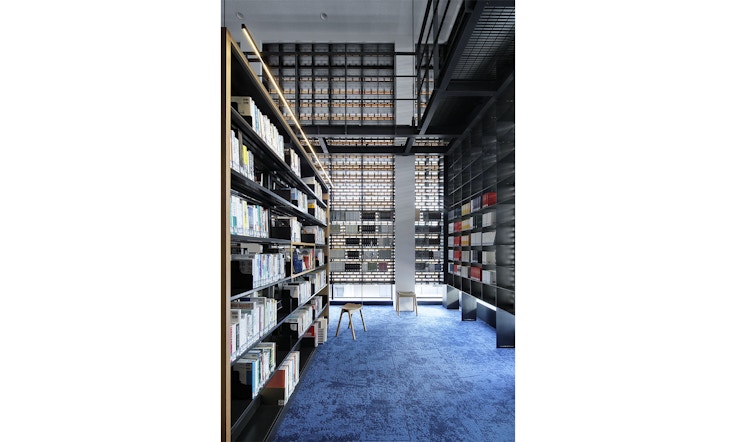 設計を担当したのは奥野設計の石井秀明。前川國男館の特徴である日射を制御しながら自然光を室内に取り入れるためのホローブリック(有孔煉瓦ブロック)や、プレキャストコンクリートルーバー、隣接する県立音楽堂(前川國男設計)にも共通する、大きなガラスによる透明感と開放感というエッセンスを抽出。本と光に包まれながら本と向き合うことのできる空間を設計した。