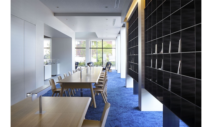 図書館内装における家具計画・編集を担当した松澤剛(株式会社E&Y)は、家具デザインを担当した中坊壮介(Sosuke Nakabo Design Office)、二俣公一(KOICHI FUTATSUMATA STUDIO)とともに、神奈川県立図書館の歴史やこれからのあり方についての対話や司書からのヒアリングを経て、デザインを検討したという。