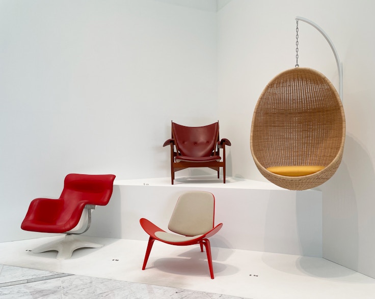 4章「ミッドセンチュリーと大衆消費社会」は1階と2階のメインフロアに分かれている。ここで登場するのは、現在でも多くの人が耳にしたことがあるであろうチャールズ・イームズや、エーロ・サーリネンなどの作品だ。これらの椅子は第二次世界大戦をきっかけに開発された新素材や技術を取り入れており、20世紀中頃のアメリカで展開された大衆消費社会を象徴するものだ。