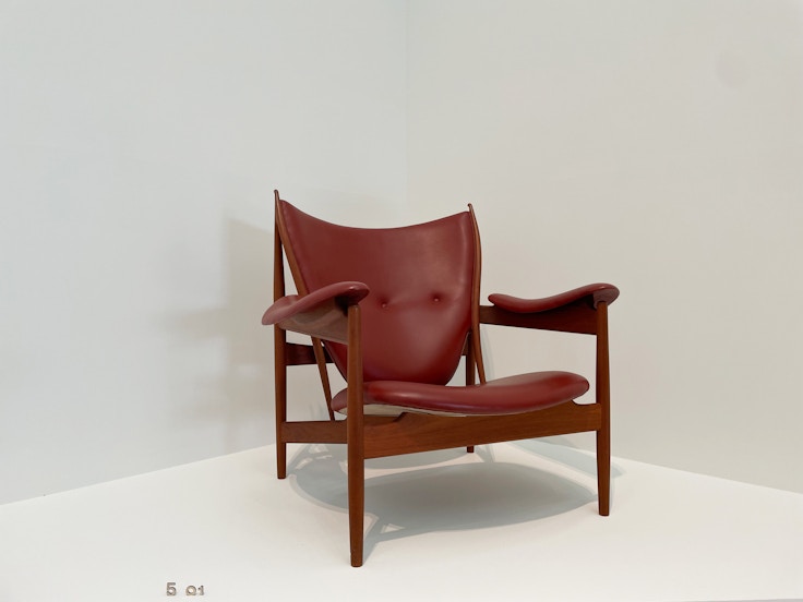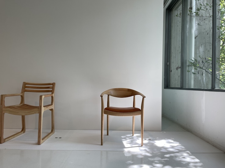 会場に入るとまず目に入るのはこのアーチだ。1章「近代椅子デザインの源流」では、ハンス・ウェグナーやボーエ・モーエンセン、ジョージ・ナカシマ等の近代の椅子が展示されている。それらの椅子の源流となるのは、近代以前の明式家具(中国)や、ウィンザーチェア(イギリス)、シェーカチェア(アメリカ)などであり、本展冒頭のこの章では「椅子デザイン史は、リ・デザインの歴史」であることを知ることができる。