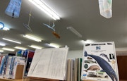 是恒さくらは、7年ほど前からクジラに興味を抱き、2019年から北海道に通い、2021年秋から約半年間、苫小牧に移住してクジラやイルカを観察した。その間、室蘭から勇払(ゆうふつ)まで東西に弧を描くような海岸線の鯨にまつわる語りをリサーチし、数千年前の地層から出土する鯨の骨、漁村の鯨信仰、季節移動するイルカの群れなどと出会った。それらの物語を縫い取った刺繍作品、海辺の日光で染めたサノアノタイプ(青写真)作品を展示。また、7編の短編「ありふれたくじらのかけら」を無料配布している。白老町立図書館、「Cafe結」、しらおい創造空間「蔵」の3会場で、ビーチコーミング(漂着物を収集・観察)するように集めたい。