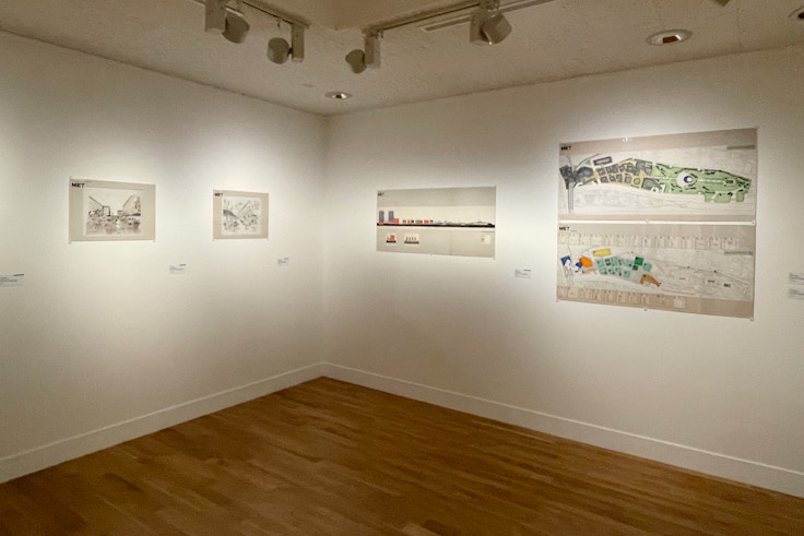 1980年代末に宮城は、二子玉川の再開発計画に外部ブレーンとして加わった。第4章ではこのプロジェクトについて取り上げ、宮城によるスケッチを展示。メインとなる大通りだけでなく路地のスケッチもあり、行き交う人々が主役の街として構想されていたことがうかがえる。