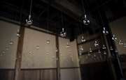 勝興寺の展示順路のクライマックスに位置するのが、小曽川瑠那のガラスを用いたインスタレーション作品《息を織る|北陸2022》。生や記憶を保管するための記録媒体ととらえてガラス作品を制作する小曽川は、北陸に在住する約200名の参加者を募り、それぞれが吹きガラスに息を吹き込むことでガラスの内側に生を記録。吹きガラスという工芸技術を駆使し、死生観を表現する静謐なインスタレーション作品が完成した。