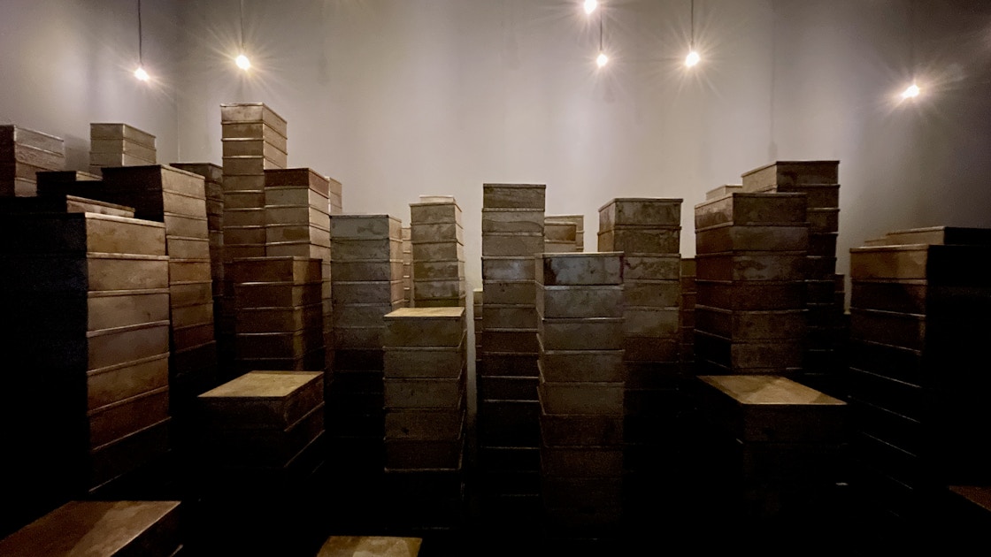 暗い展示室に設置された作品は、ボルタンスキーの代表作である錆びたビスケット缶を積み上げたインスタレーションだ。使用されたビスケット缶の数は1050個。町内の板金工場が作家に確認をとりながら手作業で制作し、南三陸町の潮風のなかで風化し、錆びていった。ボルタンスキーは作品完成を見届けることなくこの世を去ったが、同氏の作品制作を全世界で手がけてきたアトリエ エヴァ・アルバランとともに制作を進めることで完成へと至った。