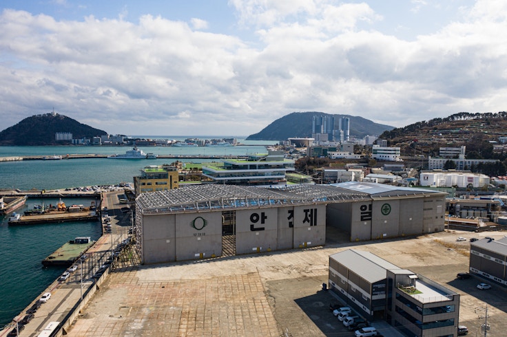 そんな歴史ある影島の造船所跡が会場となる。広大な空間に入ってまず目前に広がるのは、ミレ・リー(Mire Lee)の《Landscape with Many Holes: Skins of Young-do Sea》だ。