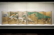 第3章「金銀かがく琳派の美」でもっとも存在感を放つのは、俵屋宗達による国宝《源氏物語関屋澪標図屏風》(1631)だろう。メトロポリタン美術館での展示歴もあるこの作品は、岩崎彌之助が醍醐寺復興の寄進をしたことから、その礼として譲り受けたとされている。