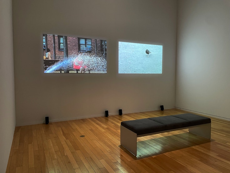 今回の個展では映像作品も数多く展示されている。「Illuminance」は、展示されるたびに新しく映像が追加されるというコンセプトの作品で、川内の活動の軌跡でもあり、永遠に未完であり続ける作品でもある。写真集の見開きのように2つの映像が並べられ、再生タイミングをずらしながら展示。鑑賞者が見るたびに新たな見開きを目の当たりにすることができる、写真集にはない鑑賞体験が提示される。