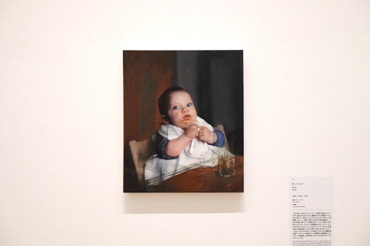 豊田市美術館では本展のキービジュアルとして《モーリッツ》(2000/2001/2019)を大きく使用している。描かれた当時8ヶ月だったリヒターの息子を描いた本作は、リヒターの作風を雄弁に語る類のものではない。しかし、本作がリヒターの画業を語るうえで重要な理由を、鈴木は次のように述べた。 「《モーリッツ》に描かれている8ヵ月の子供は、視力が発達し意識して『見る』という行為を習得し始める時期だ。ここにもリヒターの『見る』ことへの興味がうかがえる。本展に展示されたリヒターの作品は様々だが、いずれもネットワークのように(各作品の主題を)互いにひもづけることが可能だ。本作はその最たるものではないか」。
