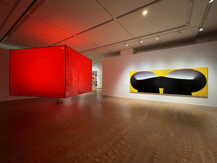 会場は4つのキーワード、「空間」「物質」「コンセプト」「場所」で構成された。例えば「空間」では、田中敦子の《電気服》(1956/86)や吉原治良の《作品》(1971)など、「具体」と言えば思い浮かぶような、強度のある作品が空間を支配する。