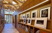 ゲストが最初に足を踏み入れるのは、吹き抜けが気持ちいいライブラリー。アルヴァ・アアルトのアームチェアと、ギュンター・フォルグの抽象画《Grid Painting》(2006)が空間全体にアクセントを与えている。作品を構成する色彩が、周囲の自然と呼応するようだ。