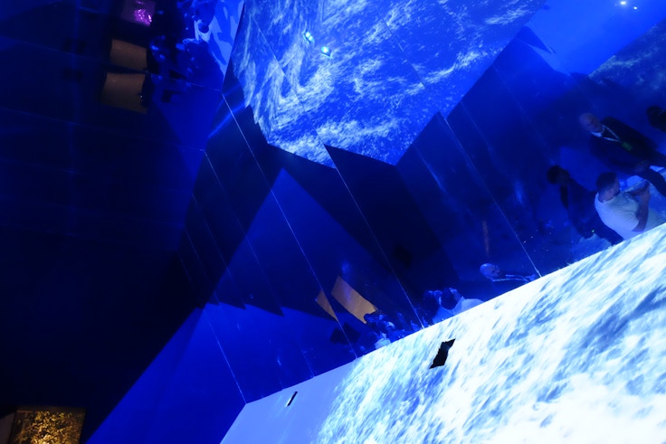 メキシコのマルチメディア・アーティストであるVIGASの《APPARATUS 1010》(2022)は、宇宙の無限性と人間の認知の限界について問いを投げかける作品。鏡面とモニターを組み合わせたトンネル状の空間に入ると、大きな流れの中にいるような感覚とともに、そこに立つ鑑賞者自身の姿も鏡面に映し出す。