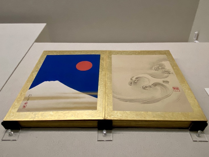 建物内1階にある美術館の入り口を抜けると、壮麗なホワイエを囲むかたちで4つの展示室がある。ギャラリー1「新春・日の出」には、正面に横山大観の《日の出》と滝和亭《松に鶴・梅竹に鳩図屏風》が並んで展示されている。初日の出を思わせる対策と金色に輝く屏風からは、新年のめでたい雰囲気が感じられるだろう。
