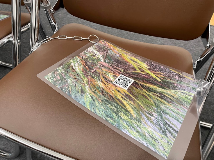 本展では、新作《Sit, Dowen. Sit, Dowen Please, Sphinx》(2022)内に泉の過去作品が改変された状態で複数登場する。最初の展示室では、ファイルに記載されたQRコードをを読み込むことで音声が流れ、まず展示に参加する(ここでは「野生に戻る」と表現される)ための教習がなされる。