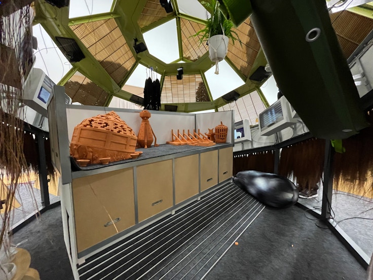 同展示室内には、「墓の管理者」の座席が端に設置されている。管理者の所持するVRゴーグルからは陵墓の領域を示すデータが複数表示されているようで、展示室のなかにおけるその領域を定めることができるのだという(鑑賞者は見ることができない)。