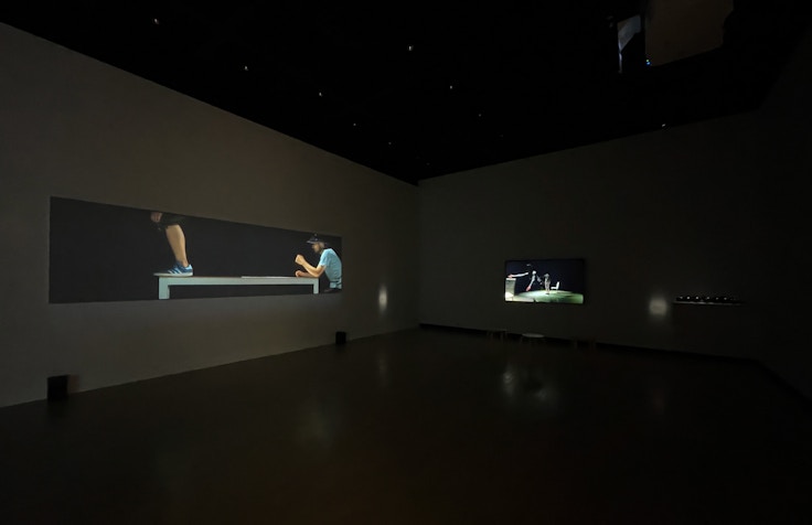 金の作品《Eye to Eye》(2023)は、滋賀県のブラジル人学校・サンタナ学園の人々との共同制作。移民やその地域コミュニティなど、日本人と異なる背景を持つ人々と見つめあうことでその接続を促すものだ。また、大木による《meta dramatic 劇的》(2022)は、自身の領域である「映像 / 映画」「ライブ / パフォーマンス」をテーマに、これらのあいだに生じている全体性の欠如を可能性としてとらえるもので、それらを大木自身が実践をすることで世に問う作品となっている。会期中にはこの4作品のなかから特別賞が決定される。