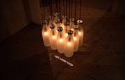 松本市近代遺産である旧三松屋蔵座敷(はかり資料館)には、オランダのデザインレーベルにして、90年代に世界から注目されたダッチデザインの中心にいたドローグデザインの作品が並ぶ。ノーデザインの精神で「何色にも染まらない、ユーモアとウィット、そしてちょっぴりの皮肉をあなたの日常に」をコンセプトに活動を展開。古いミルクボトル12本を束ね、ミルクケースに並んだ状態のまま照明器具となった《milk bottle lamp》や、壁にポスターや写真と一緒に貼り付けてインスタントに額装を楽しむ《do frame tape》など、レーベルのコンセプトを体現した作品に笑いがこぼれてくる。