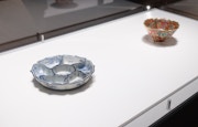本章では木米の作品のみならず、師である奥田頴川の中国趣味をふんだんに織り込んだ器も展示。例えば《呉州赤絵花鳥文手付鉢》(18〜19世紀)は、明代末期に福建省の漳州近辺の窯でつくらた白釉地に赤と緑の色絵が特徴的な「呉須赤絵」の意匠を基調としたものだ。こうした当時の中国(清)ではなく明代の器に写しの対象を求めるこの頴川の作風は、そのまま木米にも受け継がれていった。