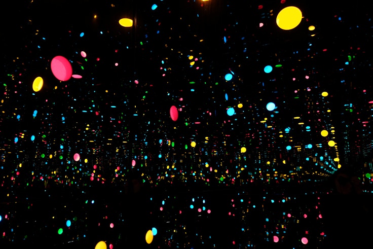内部の壁面には金属的な輝きを持つ球やリボン、ビーズ、楽器といったモチーフがぎっちりと敷き詰められて電飾で彩られ、そこに天井の穴から自然光が注いでいる。さながら内部に装飾を持つクリスマスツリーのようにも見える本作。ぜひ現地で体感してもらいたい。