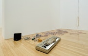 東京オペラシティ アートギャラリーにおける個展も話題の泉太郎は、動物の異質性を作品に取り込み、人間の知覚とは異なる不条理なユーモアを生み出す。とくに注目したいのが、インスタレーション《クイーン・メイブのシステムキッチン(チャックモールにオムファロスを捧げる)》だろう。1つの展示室を丸ごと使用したこの作品の中央に鎮座するのは、清掃具入れ展示室内に移設した「神殿」のようなもの。天井にはチェシャ猫の笑みを連想させるような「穴」が開き、今年1月まで同館で開催されていた「ゲルハルト・リヒター展」の痕跡をも作品へと取り込んだ。通常、裏側に潜む美術館の機能が泉の手によって鑑賞者の面前に現れる、あべこべの世界が広がる。