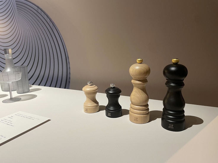 本展では椅子以外にも、キッチン用品や生活に欠かせない家具が多数紹介されている。手にフィットするようかたちが設計されたペッパーミルは1874年に登場し、いまなお多くのバリエーションが開発されている。