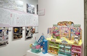 展覧会は、「ショッピングモールはユートピアだ」という仮説をもとに、「街」「内と外の反転」「ユートピア」「バックヤード」などのテーマを切り口に展開。大山や本展の協力者のひとり・速水健朗(ライター)による膨大なテキストとともに、映画、音楽、コミック、小説、ゲームなど、モールを舞台とした様々な作品や資料が並ぶ。