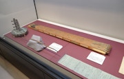 注目したいのが、『聆涛閣集古帖』では現代の文化財研究では抜け落ちてしまったカテゴリーが、美術品と同列に扱われていることだ。例えば尺や枡といった度量衡関係の資料や、寺社に掲げられていた扁額などがこれに当たる。現代を生きる我々が当たり前のように受け入れているアカデミックな分類を、別の観点で考え直してみるという意図が展示からは伺える。