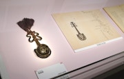 模写や拓本を分類整理した『聆涛閣集古帖』は、全46帖+未表層20枚からなる。その分類の種類は地図、書、肖像、印章、甲冑や武器、敷物や文房具、楽器、仏具など30強にも及ぶという。会場では各ジャンルごとに『聆涛閣集古帖』に描かれた古器物の絵のパネルと、本館ならびに全国の美術館から集められたその実物が並んでいる。