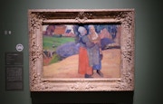 当初、ピサロの影響を強く受けた印象派的な傾向を強く持つ絵を描いていたゴーガンは、やがてエミール・ベルナールとの交友を通じて絵に精神的なものを込めるようになる。さらに最初のタヒチ滞在を経たのちに描かれた《ブルターニュの農婦たち》(1894)では、まるでタヒチの女性たちの姿を重ねるように農婦が描かれた。「ブルターニュにおけるゴーガン」というテーマを設けることで、その作風の変遷を高い解像度で提示している。