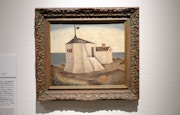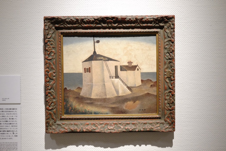 藤田嗣治もブルターニュを旅行した画家だ。《十字架の見える風景》(1920)は、空と海を一体で描いたような構図が印象的な作品で、この十字架はブルターニュの街なかにあるモニュメント「カルヴェール」だ。藤田にとってはこのブルターニュの滞在が、キリスト教に目を開くきっかけになったという。