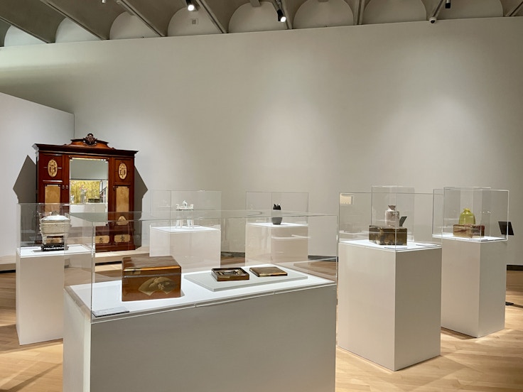展覧会では、修復したオリジナル家具や同時代の美術品、かつての邸宅の実際の写真などが展示。同館所蔵の朝香宮家伝来品に加え、国内各地に所蔵されており、本展のために里帰りしてきた衣装、工芸、調度など稀有な作品をまとめて堪能できる貴重な機会だ。