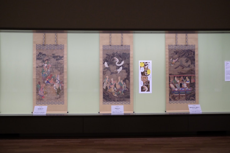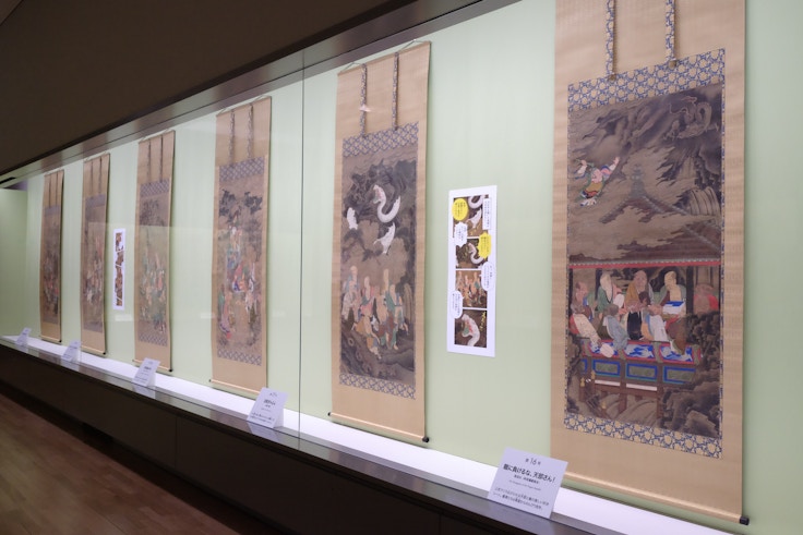 また、本展の注目作品のひとつである《五百羅漢図》は50幅で構成されるが、本展では明兆筆47幅、狩野孝信筆2幅、復元模写1幅を、会期中に入れ替えながらひとつの展示室で紹介している。